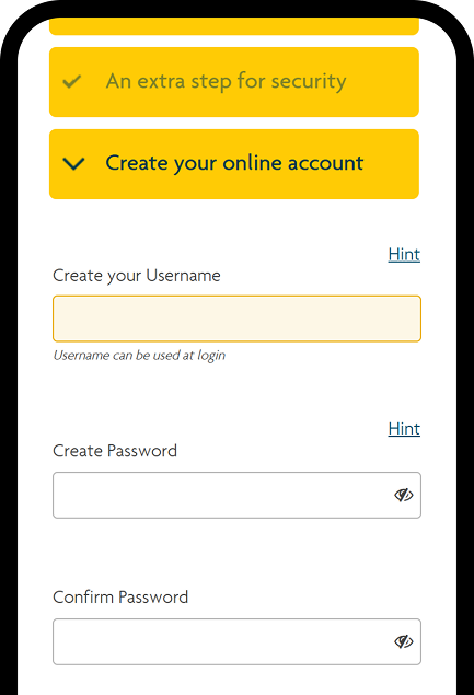 Set your username and password. If you cannot tap "Submit", check "Hint" and make sure your username and password meet the requirements before trying again.